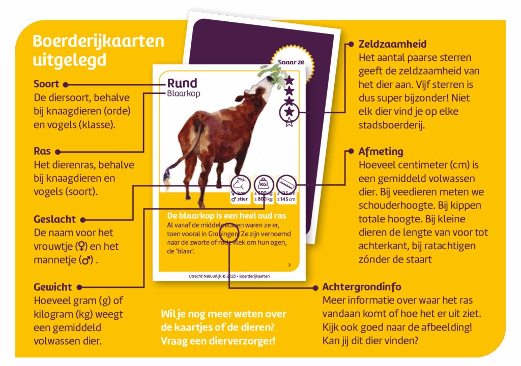 Ben jij gek op dieren én vind je het leuk om buiten bezig te zijn? Dan is er goed nieuws! Bij alle stadsboerderijen van Utrecht Natuurlijk kun je nu beginnen met het sparen van Boerderijkaarten, vrolijke en leerzame verzamelkaartjes vol leuke weetjes over de boerderijdieren.